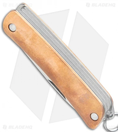 This Blade HQ Exclusive Boker Mini Tech Tool 4 features a knife, scissors, cap lifter, seat belt cutter, and flat head scredriver. This bite-size multi tool has functionality that belies it’s size. It’s got contoured copper scales giving it comfortable grip. The Sanvik 12C27 blade can cut for a good long while before losing it’s edge, and it isn’t too hard to get an edge back on. This multitool would make a great addition to any key ring, pocket, or glove box.